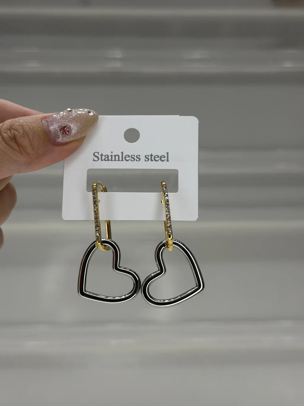 Aros Corazón Combinado Strass