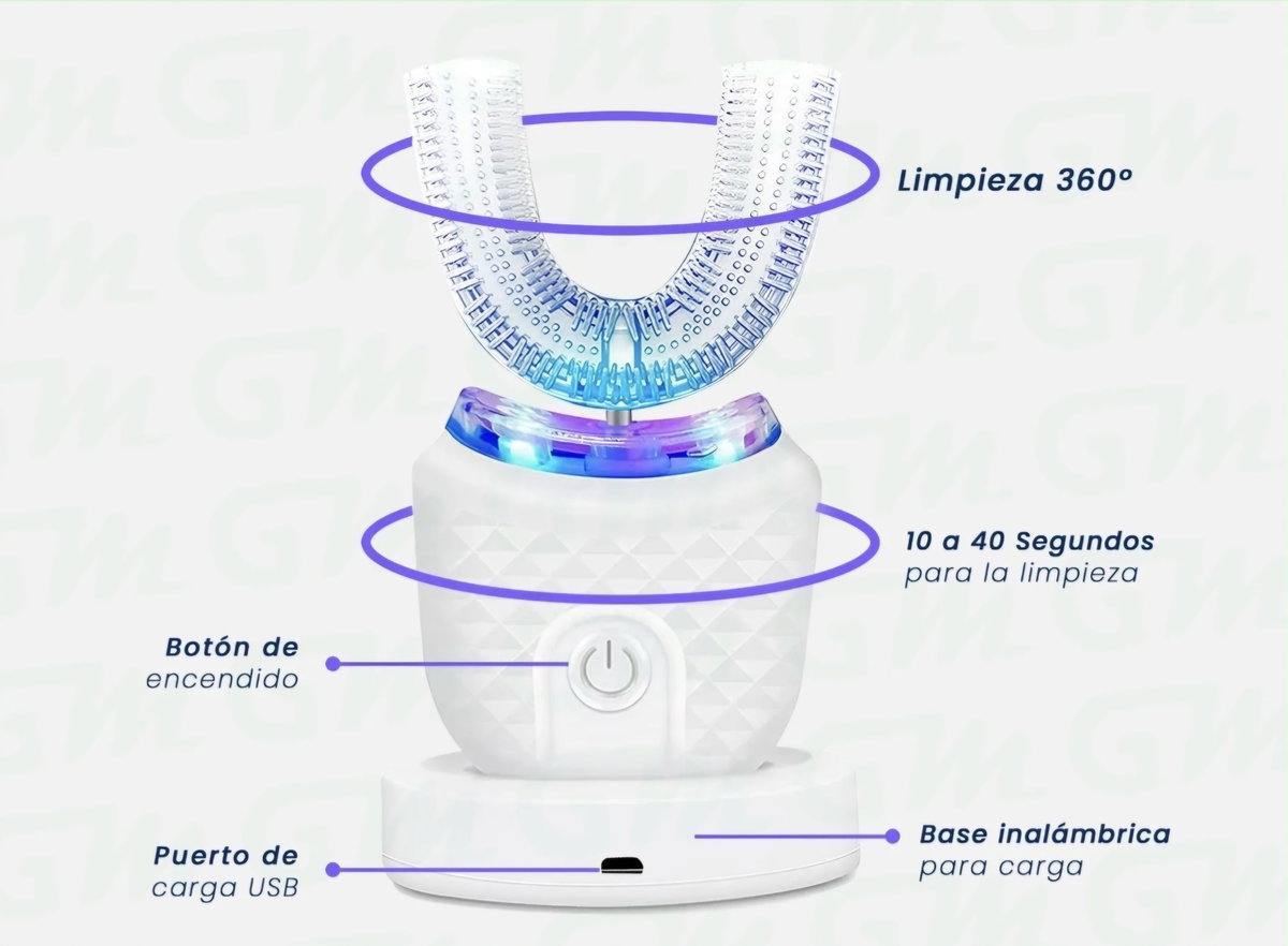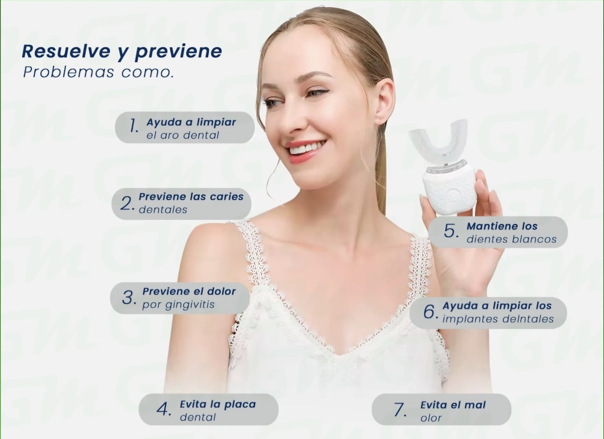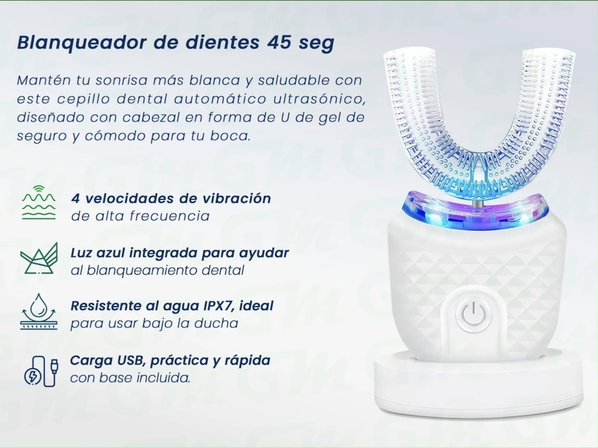 Mantené tu sonrisa más blanca y saludable con este cepillo dental automático ultrasónico. Está diseñado con cabezal en forma de U de silicona grado alimenticio, seguro, cómodo e hipoalergénico.