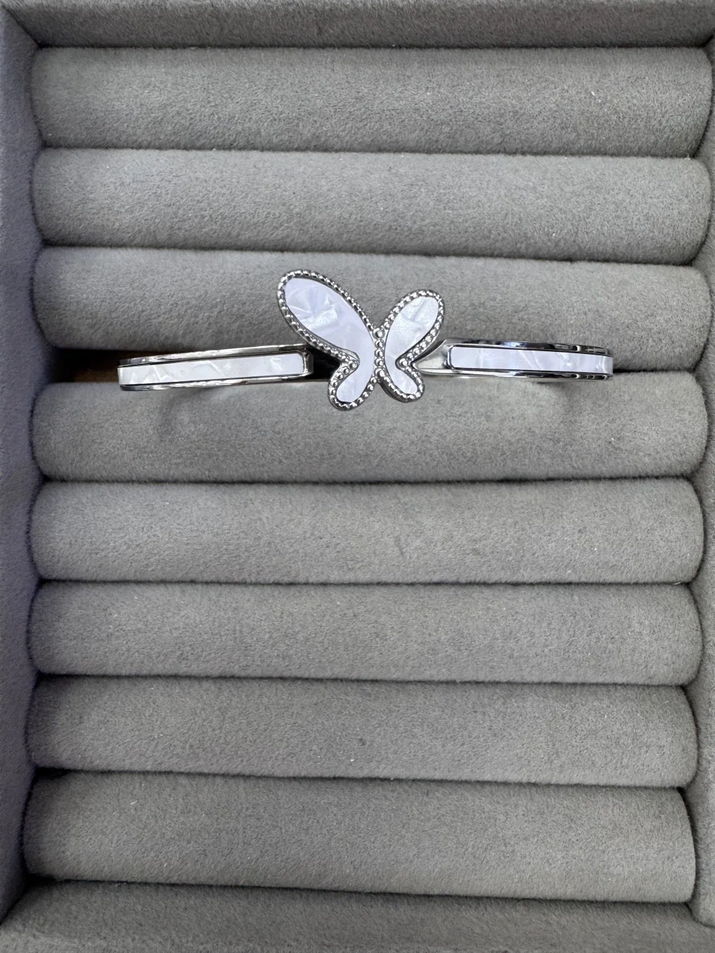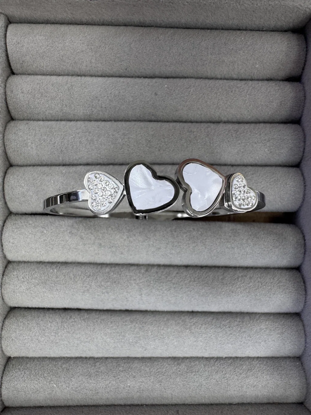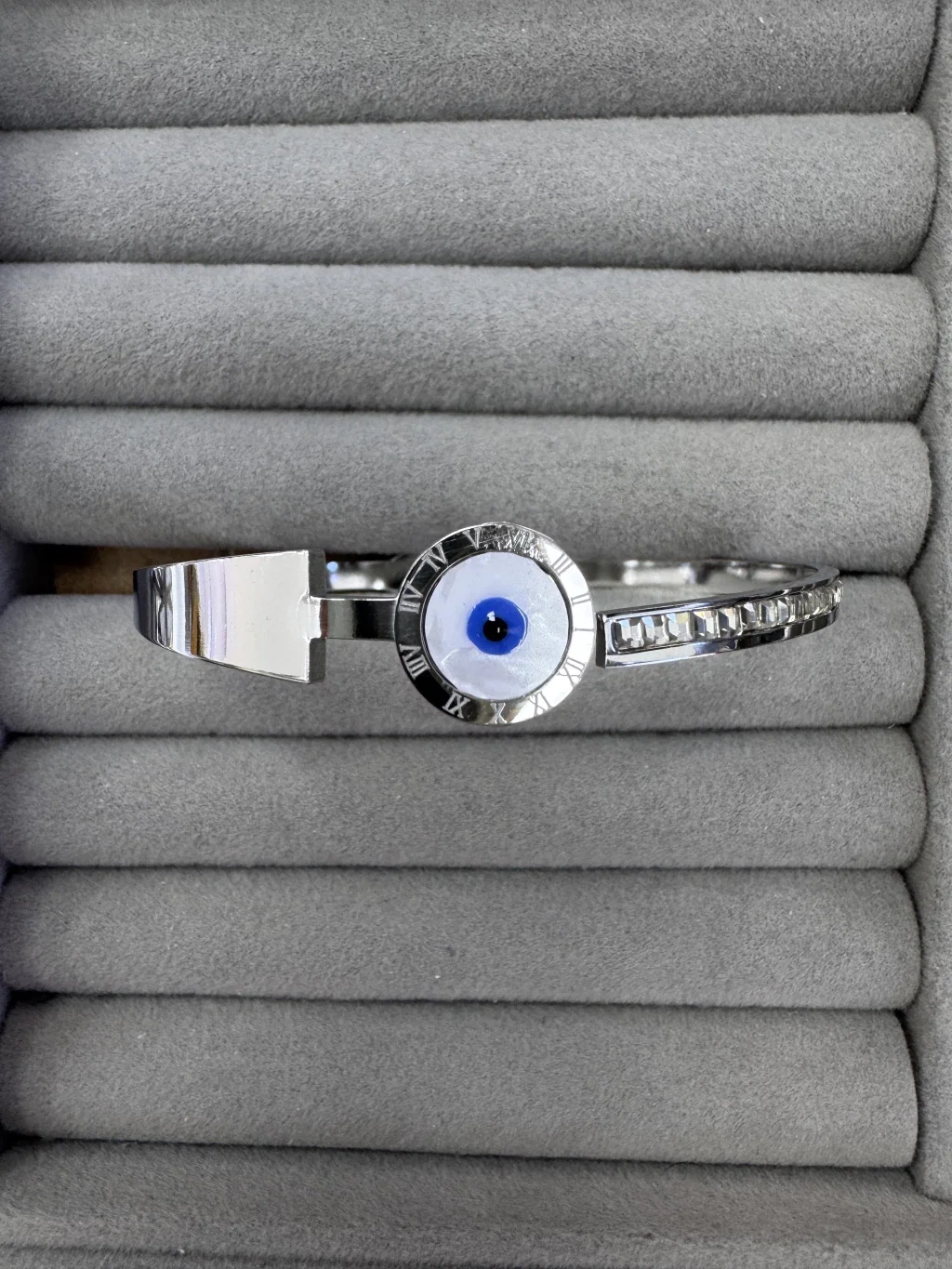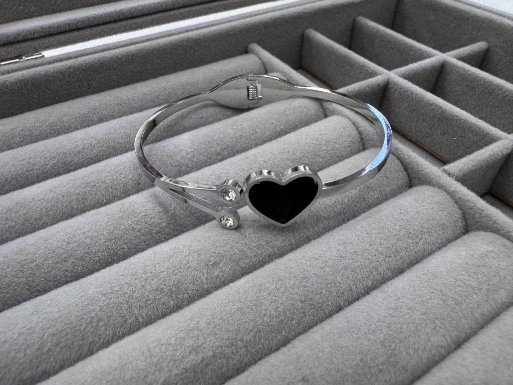 Fabricada en acero quirúrgico de calidad premium, esta esclava mantiene su brillo por mucho más tiempo, garantizando una resistencia excepcional al uso constante.