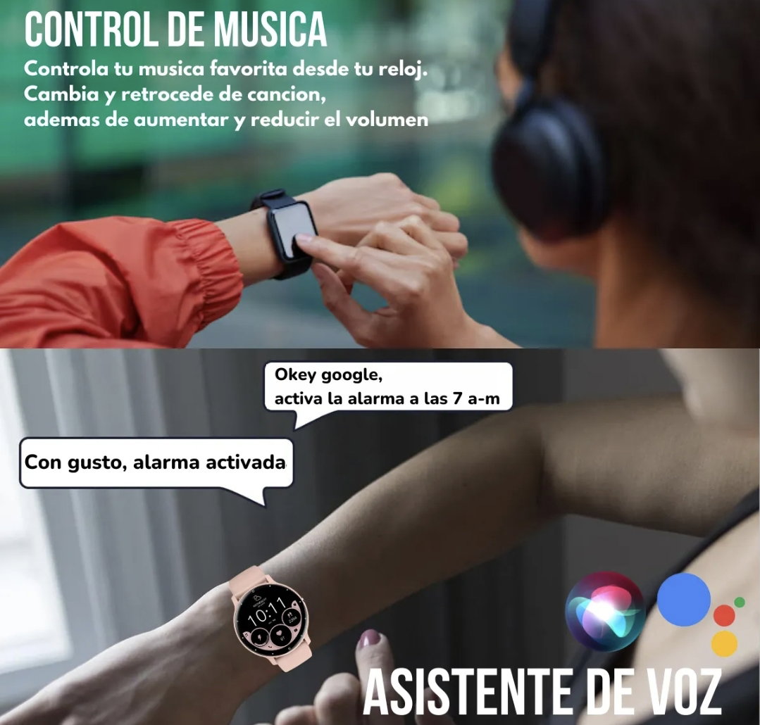 Otras: Cronómetro, alarma, clima, control de música, cámara remota, múltiples modos deportivos y de Salud!