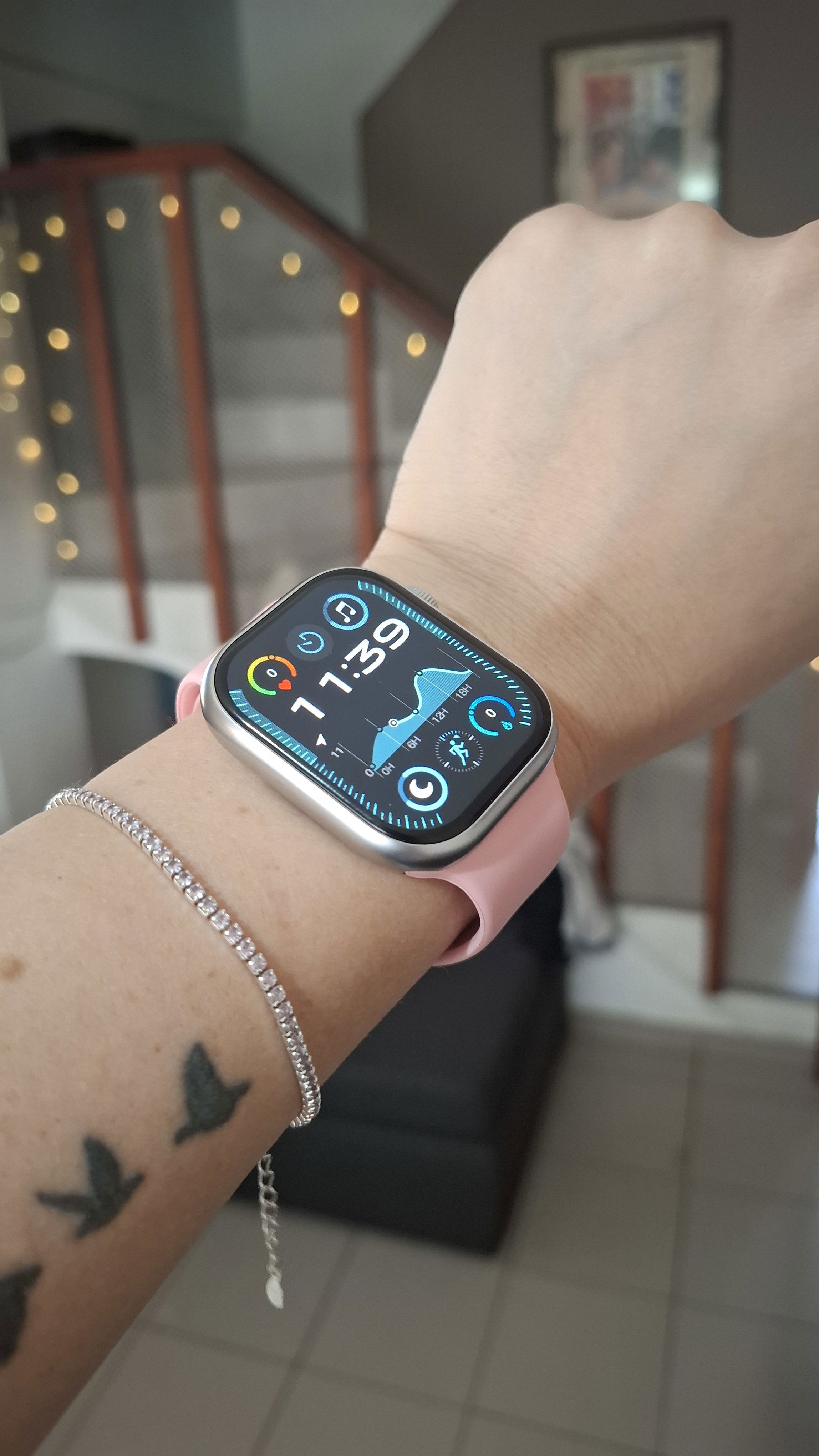 Conectividad Total: Realiza y recibe llamadas directamente desde tu muñeca con su micrófono y parlante integrados. Mantente al tanto de tus mensajes importantes sin tener que sacar el celular.