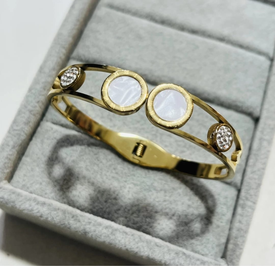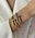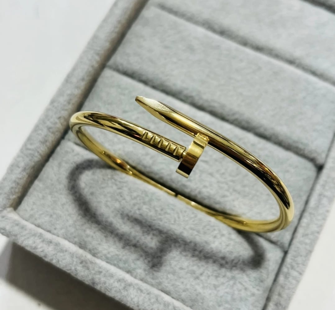 Un clásico infaltable que combina elegancia y estilo. Fabricada en acero inoxidable dorado, resistente al agua y al paso del tiempo, mantiene su brillo sin oscurecerse ni perder color.