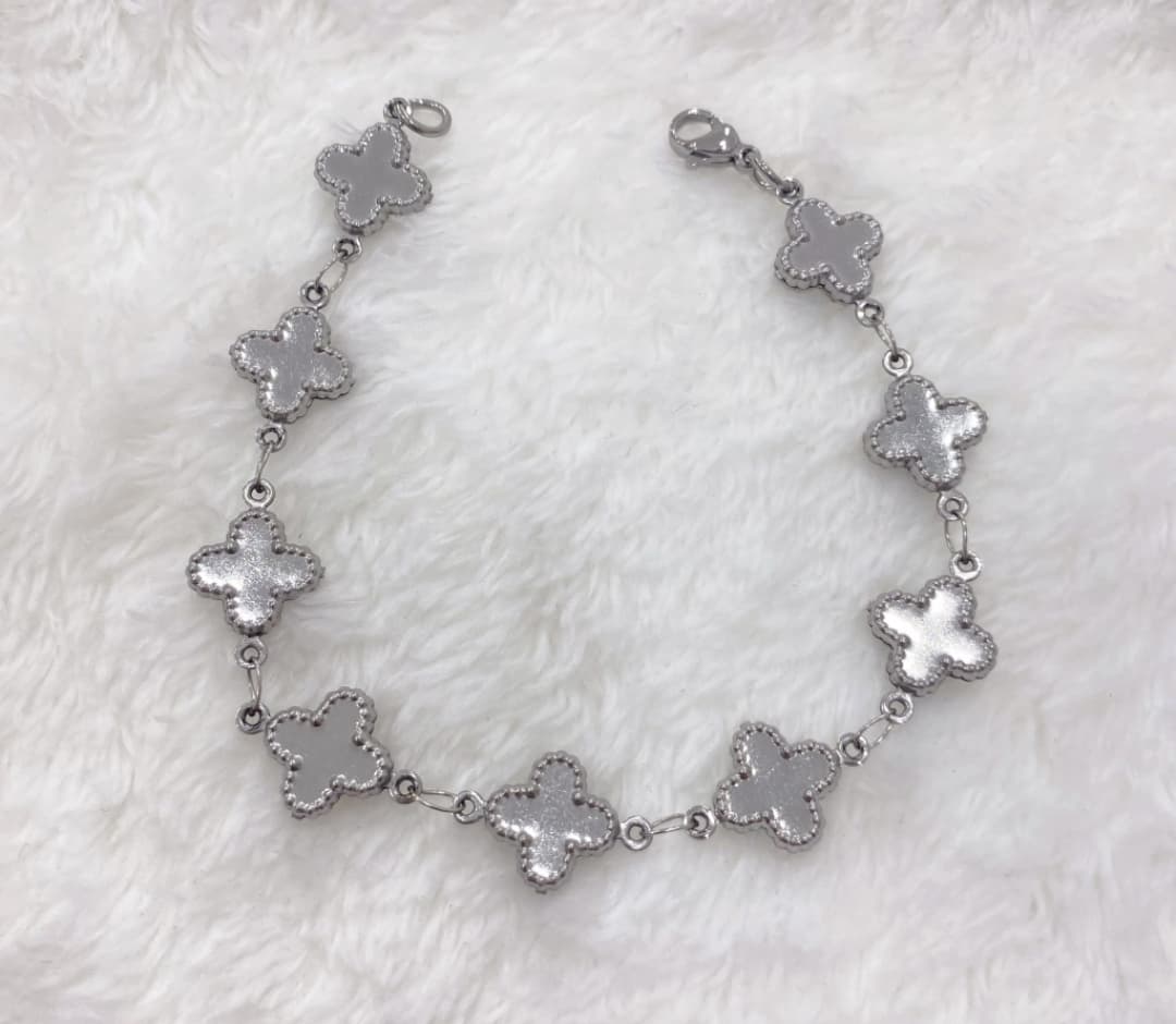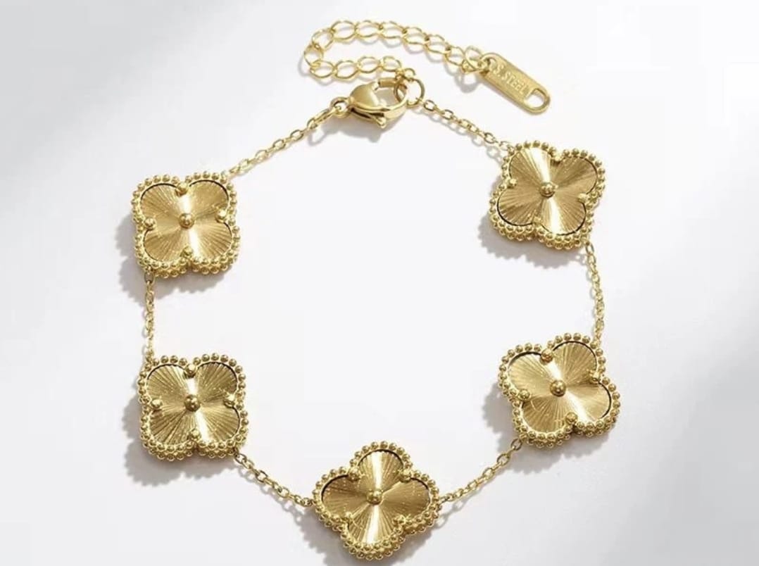 Suerte que brilla. Esta pulsera combina el poder simbólico del trébol con el lujo del acero dorado, creando una joya delicada, resistente y cargada de energía positiva.