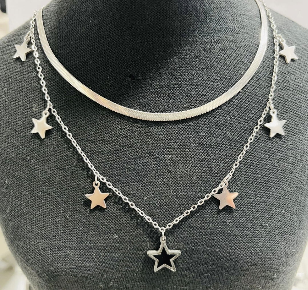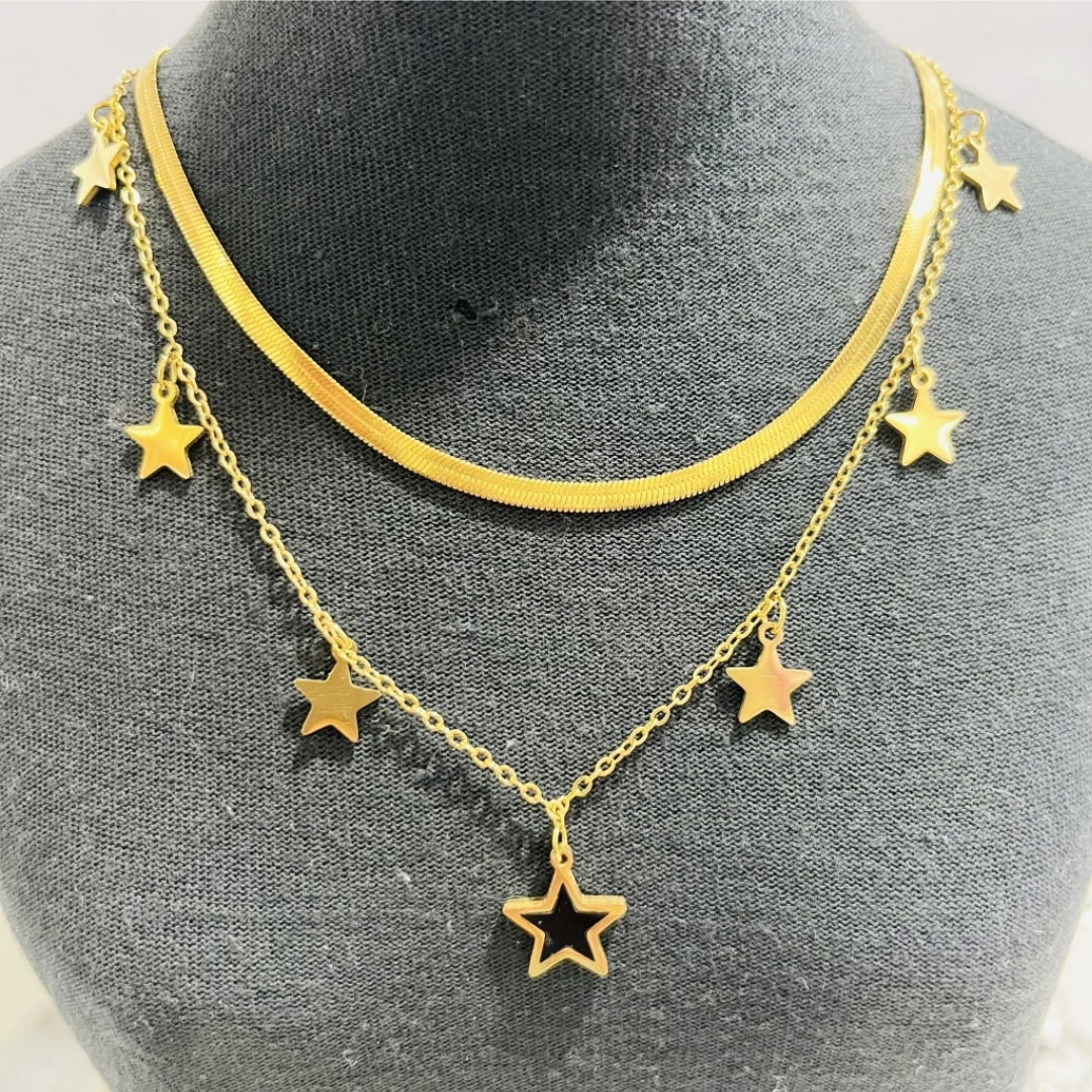 • Diseño en dos niveles: Una cadena corta tipo choker y otra más larga con estrella colgante.