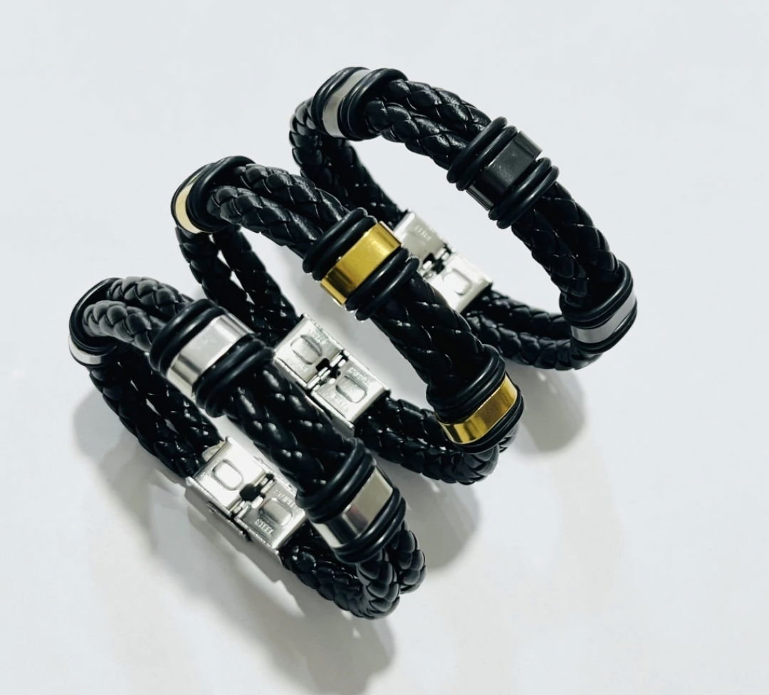 Estilo urbano con carácter. Esta pulsera fusiona la textura suave de la cuerina con la firmeza del acero inoxidable, creando una pieza versátil y moderna que se adapta a cualquier ocasión.