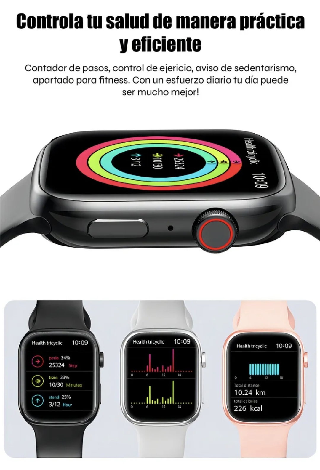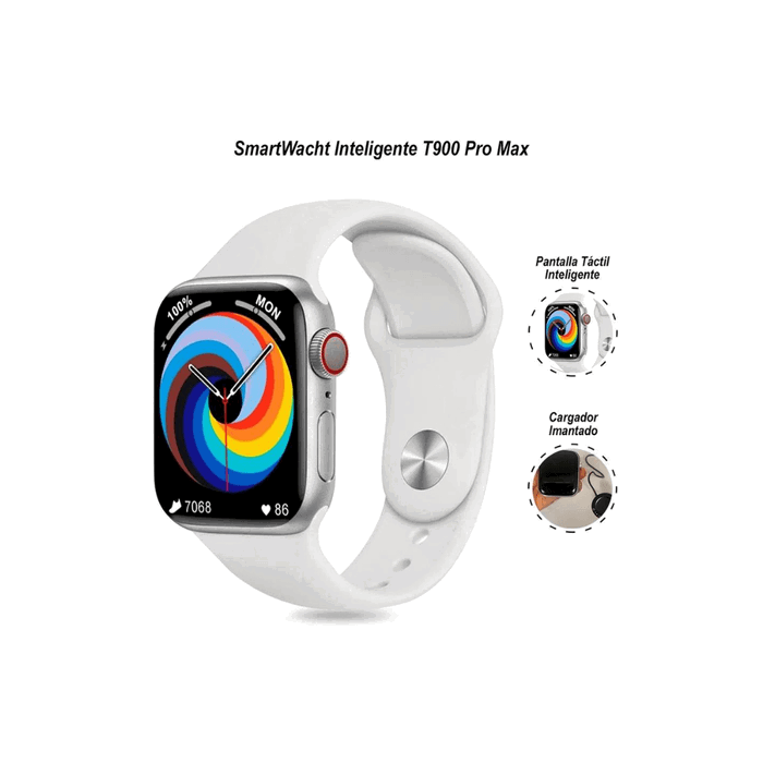 SMARTWATCH T900 PRO MAX L SERIE 9, COMPATIBLE CON IOS Y ANDROID. RASTREADOR DE SALUD, FITNESS, CORRER, CICLOS DE SUEñO, MONITOR DE FRECUENCIA CARDíACA/OXíGENO EN SANGRE. PANTALLA HD DE 2.02 PULGADAS