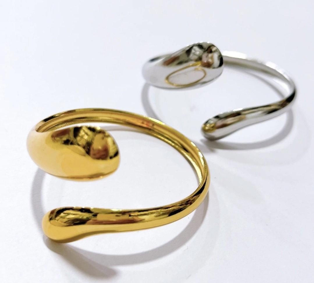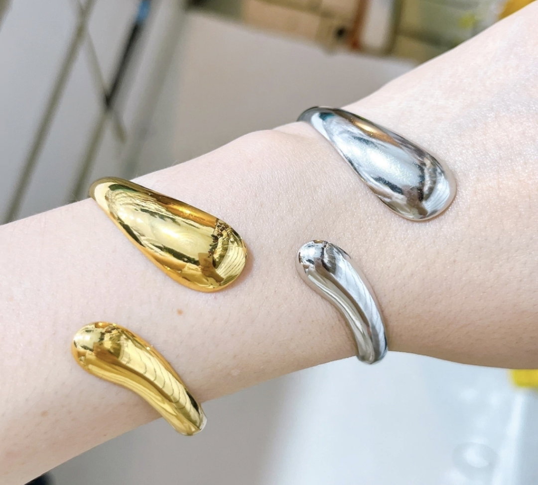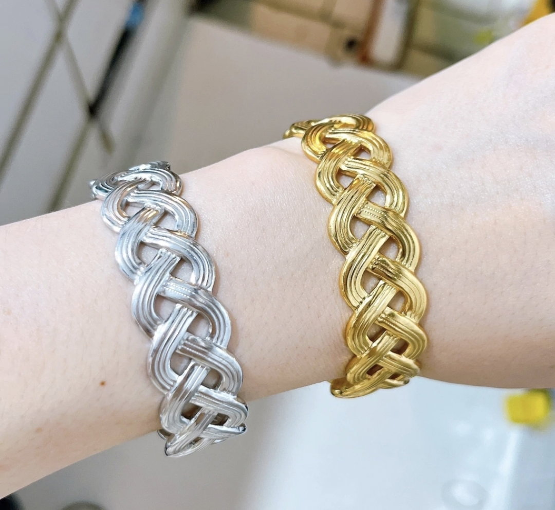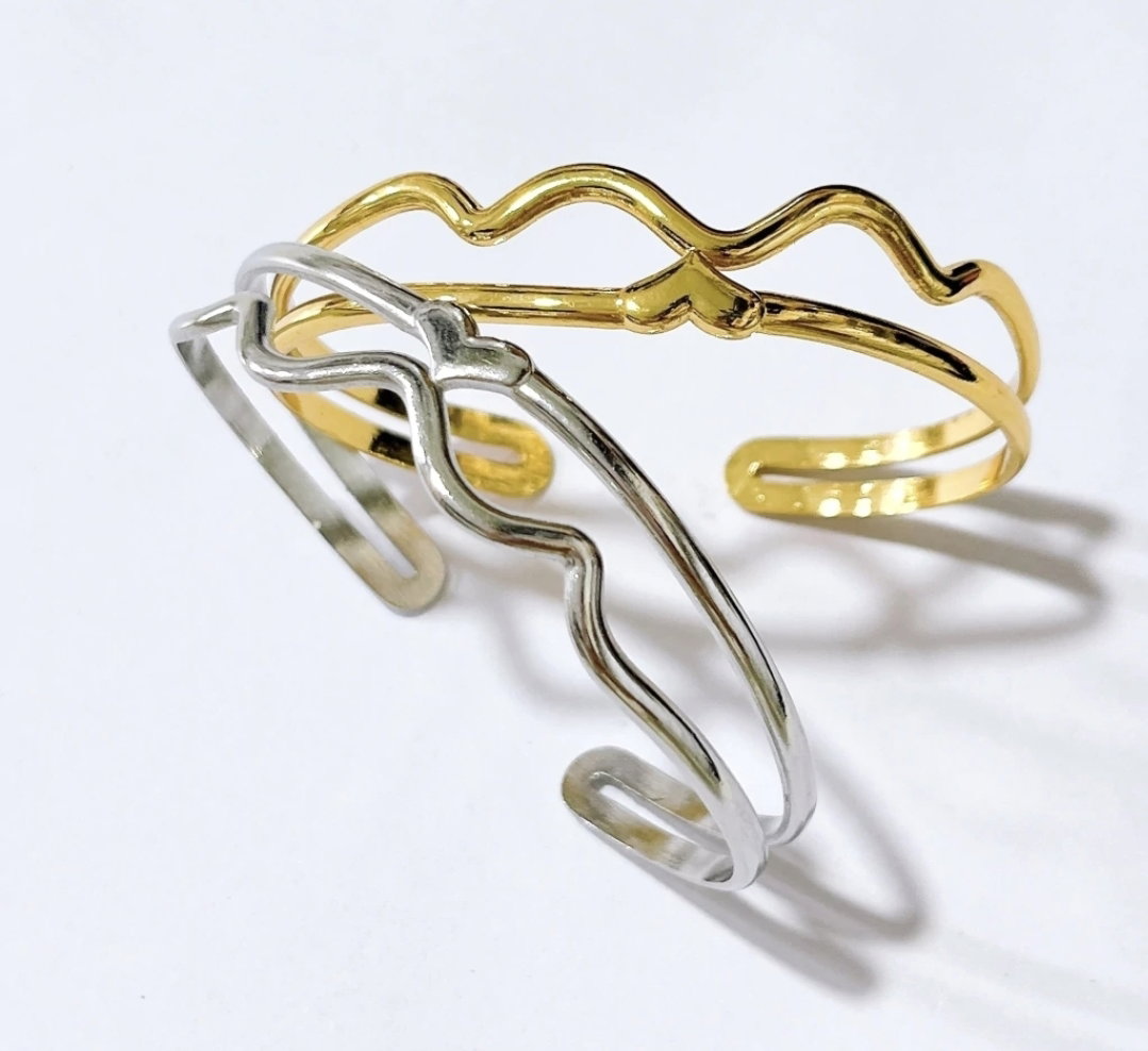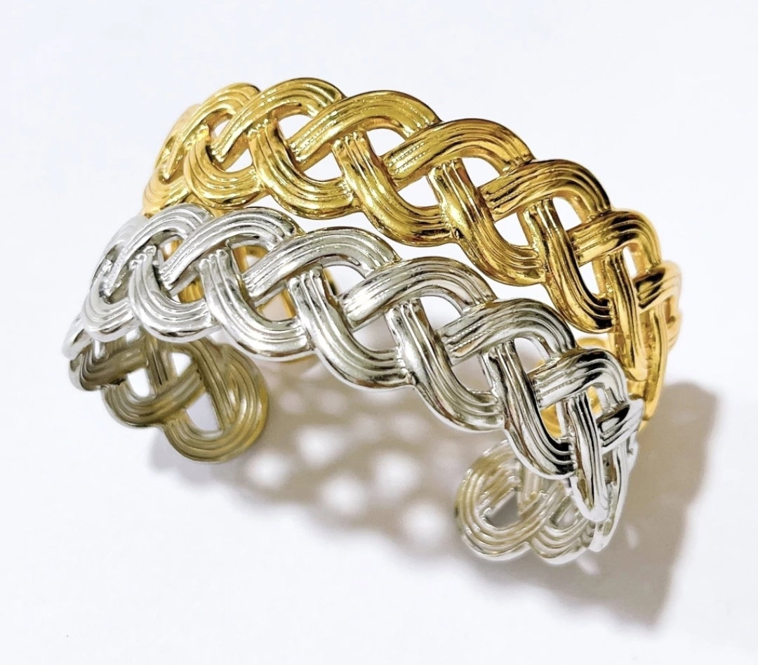 "Esclavas de acero dorado y plateado: elegancia atemporal con un toque moderno."