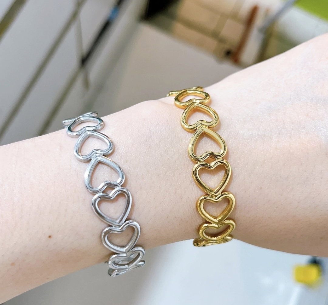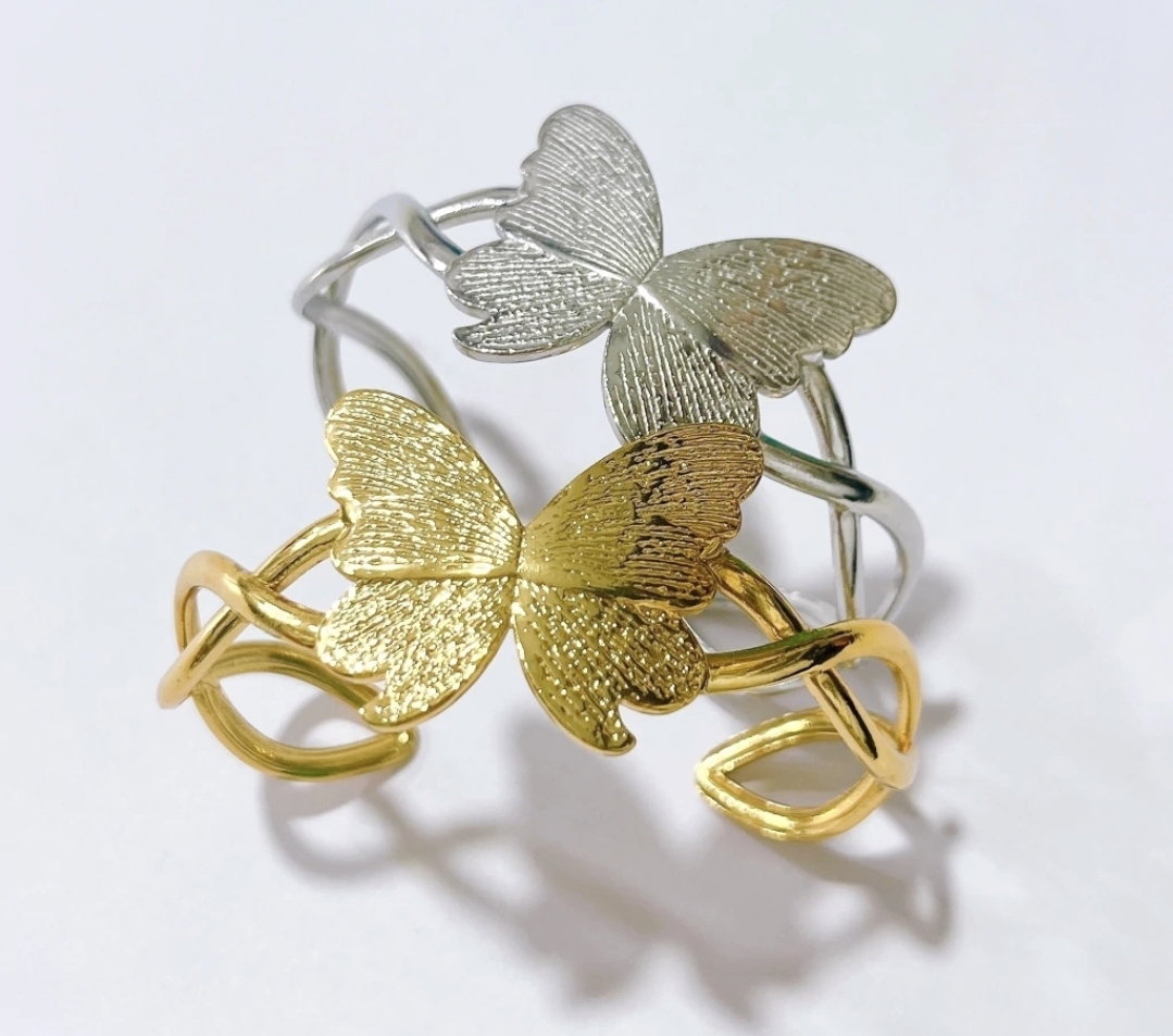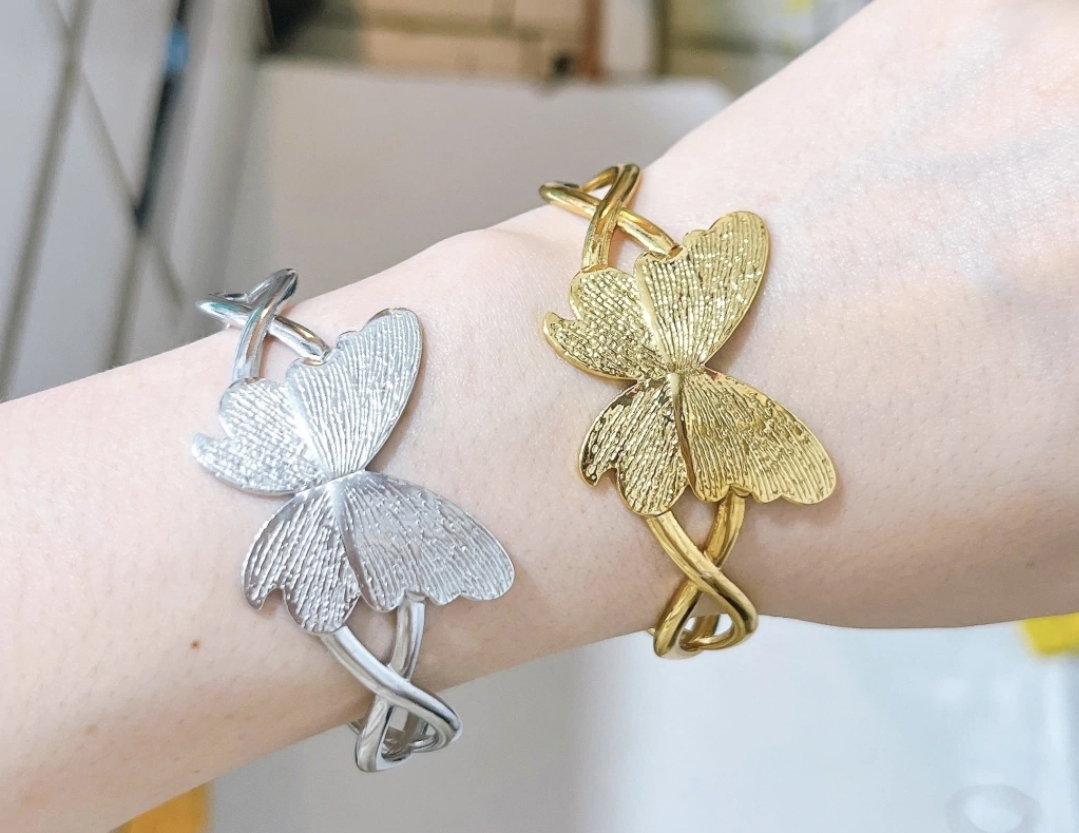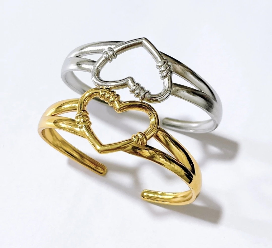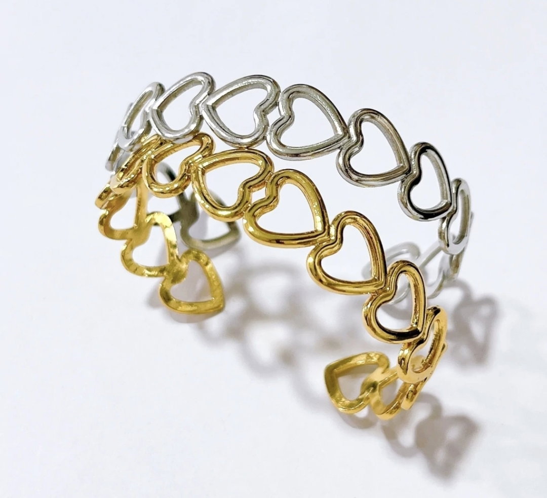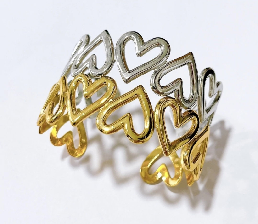 "Esclavas de acero dorado y plateado: elegancia atemporal con un toque moderno."