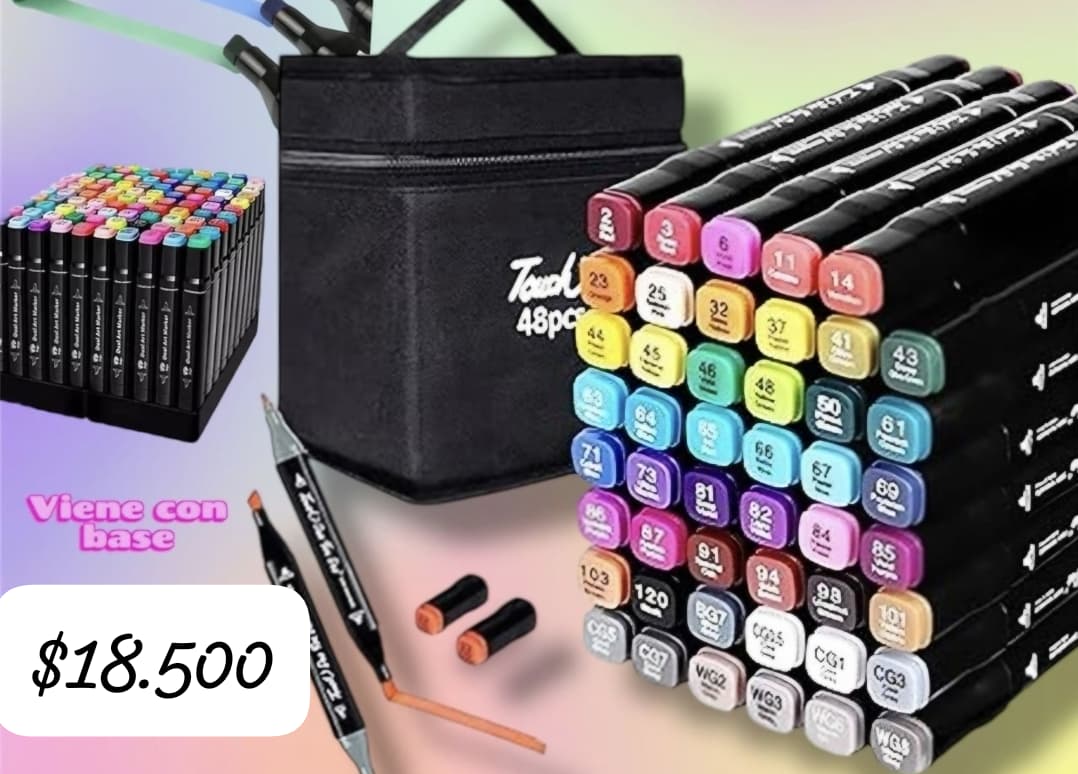 Set de marcadores profesionales tipo Touch, ideales para dibujo, ilustración, lettering, diseño y coloreado. Cada marcador cuenta con doble punta: