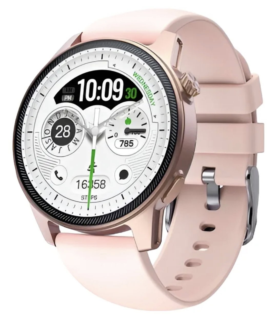 Gracias a su tecnología Bluetooth, podrás sincronizar fácilmente el Smartwatch con tu celular para recibir notificaciones directamente en tu muñeca. Además, con su monitoreo de ritmo cardíaco, oxígeno en sangre y presión arterial, podrás mantener un seguimiento preciso de tu salud en tiempo real.